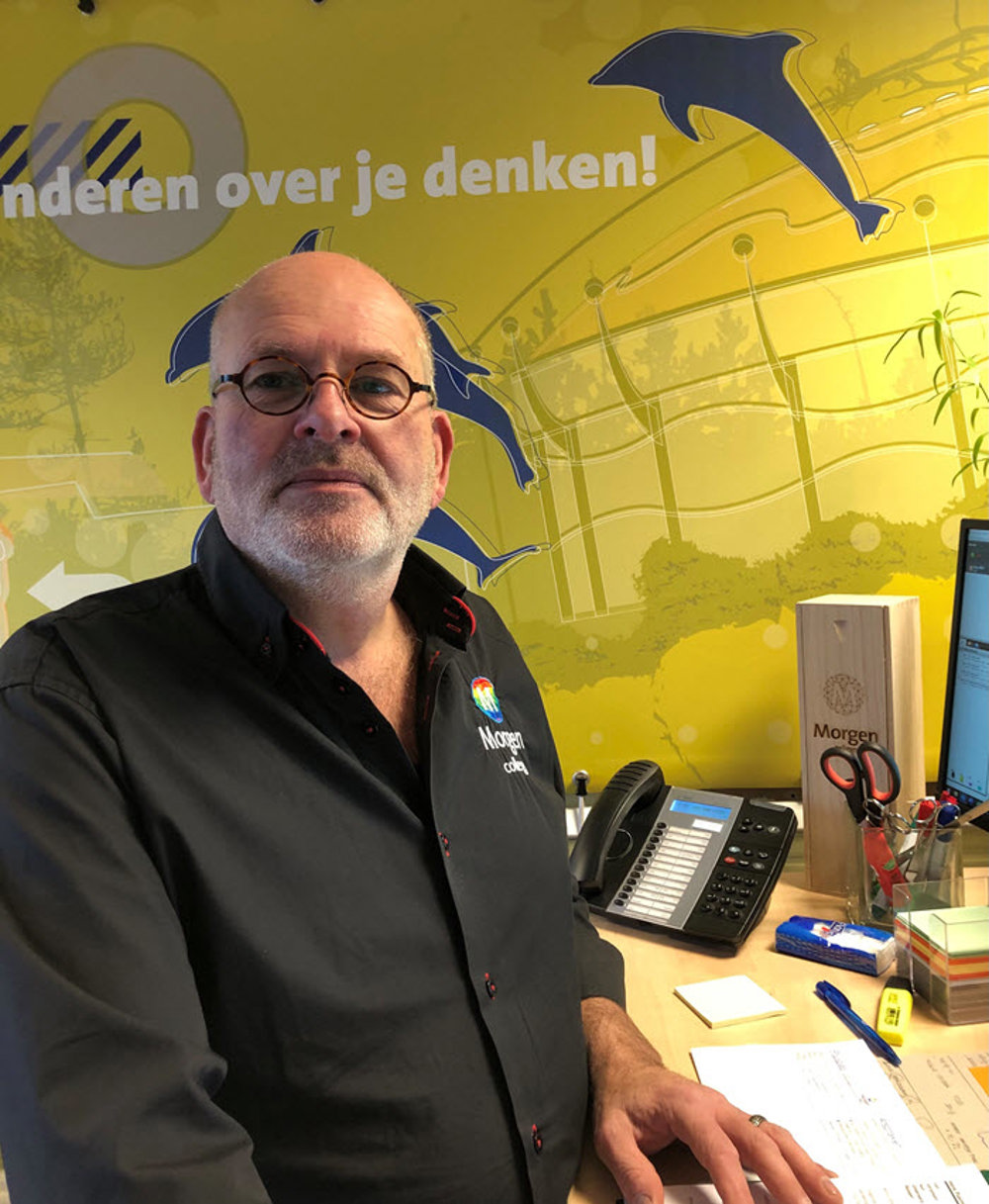 Het Morgen College is het vmbo van Harderwijk. Ik begon hier 32 jaar geleden als schoonmaker en loop nu rond als conciërge. Voor leerlingen ben ik het aanspreekpunt buiten het klaslokaal. Omdat ik zowel letterlijk als figuurlijk tussen hen in sta, weet ik precies wat er gebeurt. En kan ik helpen als ze mij nodig hebben.”